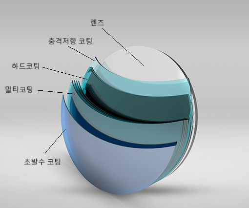 플라스틱 소재로 된 안경렌즈는 플라스틱의 특성을 보완 또는 렌즈의 기능을 향상하기 위해 코팅을 합니다.